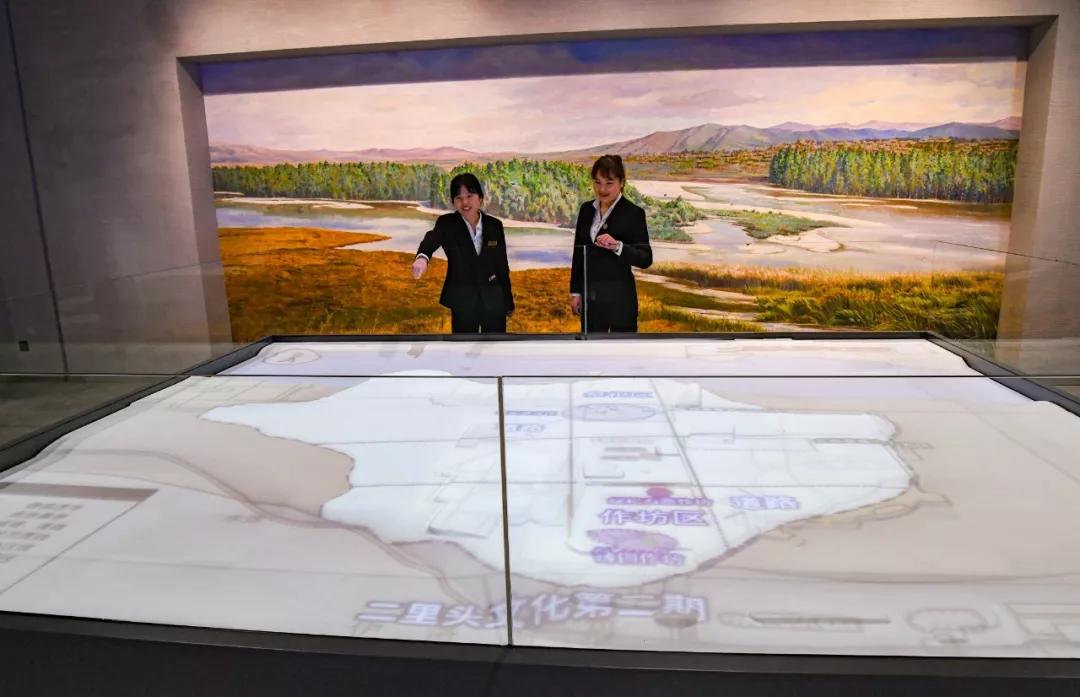 第三展厅(赫赫夏都·建中立极),通过“土中大邑”“王都气象”“百工洋洋”单元,通过文物、互动游戏、视频、实物复原、数字展示、VR体验等方式,让观众了解二里头先民生活的自然地理环境、二里头宫城平面布局和功能区划及发达的手工业等。