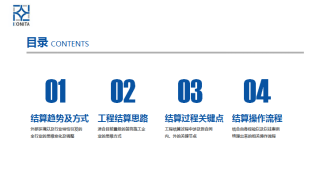 第一部分:结算趋势及方式。从现在的市场行情作出深刻的分析,明确合同利润目标,减少增项,坚持质量底线原则;确定团队作战,主材认价,合同外证据链齐全的方式,达到稳定现金流,加速结算推进,取长补短,精进流程管理的效果。