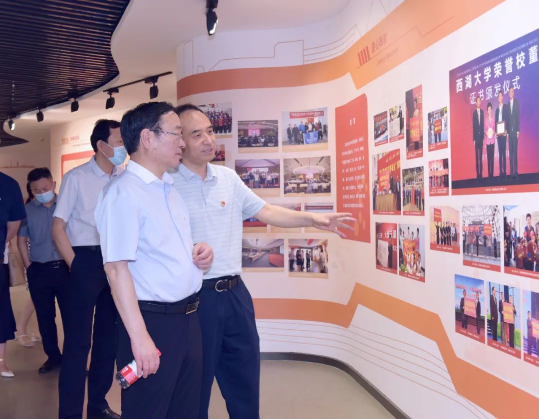 在康利达党群服务中心,巩魁生一行认真观看了宣传片《画说党史》《党建引领风帆劲》及反映集团创始人艰苦创业历程的沙画视频,参观了以党性教育、民营企业发展历程、康利达爱心慈善、图书休闲为主要内容的主题展,深入了解了康利达集团“五力”党建工作法和“一联盟三平台”工作开展情况。李继东向巩魁生一行简要介绍了康利达党群服务中心基本情况,详细讲解了“开国大典”等经典红色故事,重点讲解了康利达集团以建筑装饰起家,逐渐成长壮大的艰辛历程及集团听党话、跟党走、感党恩,支持公益、贡献爱心、回馈社会的实践活动。巩魁生对康利达集团捐赠支持西湖大学开展基础科学研究、积极投身教育慈善事业、资助医学科研人才等慈善行动频频点赞,称赞康利达是一个勇于担当作为,专注慈善事业的好企业。
