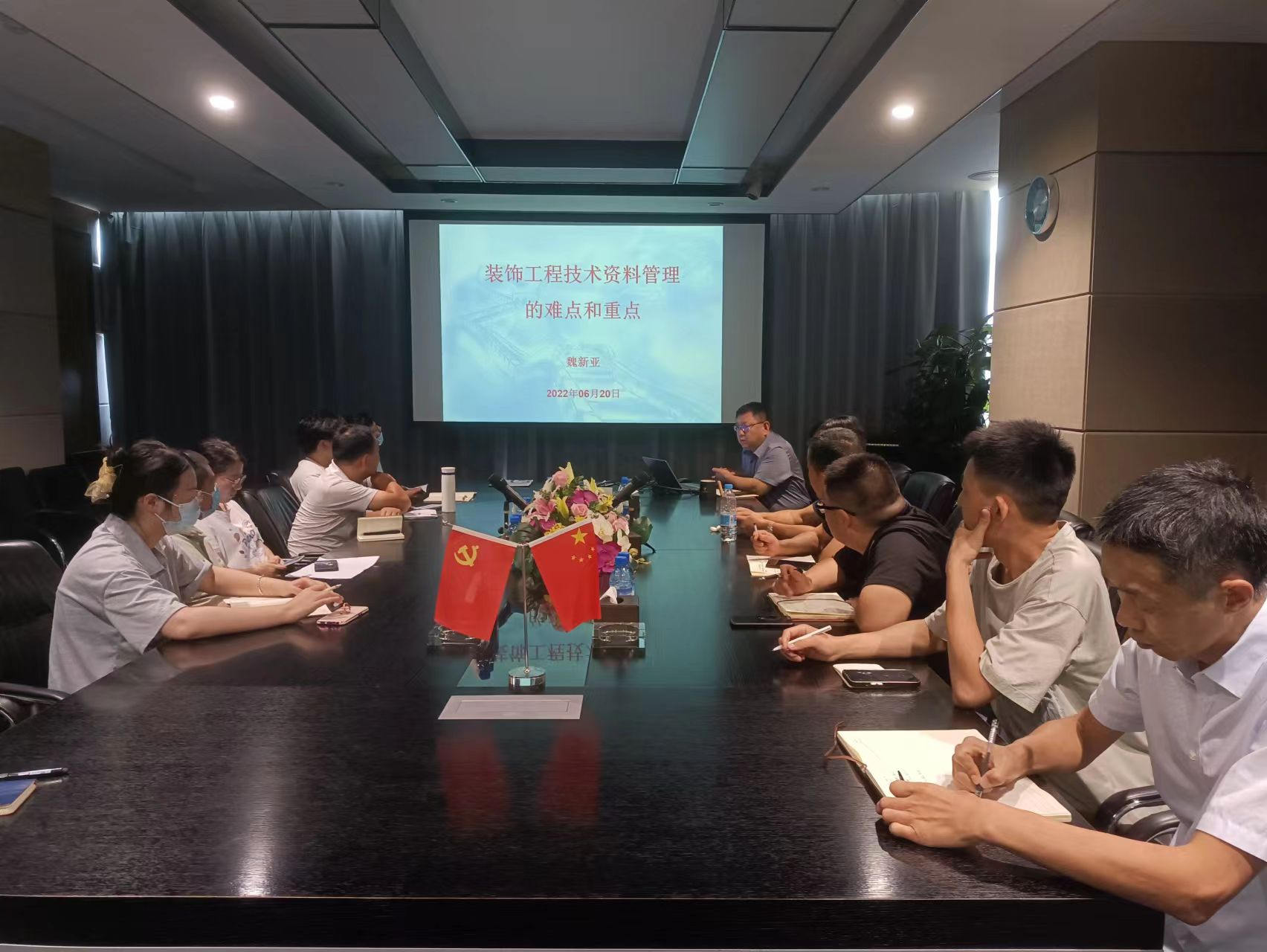七一建党节前夕,康利达装饰工程管理中心组织了一场关于《装饰工程技术资料管理的难点和重点》的培训会,由装饰公司总工程师魏新亚主讲。魏总从技术安全资料、质量控制资料、功能检测资料、项目验收资料、竣工图纸资料等五个方面全方位的讲解了资料管理的重要意义、管理方法和管理规范。公司项目管理部、质安部以及在郑项目经理和资料员等全程参加了培训,并就有关问题与魏总进行了深入交流。