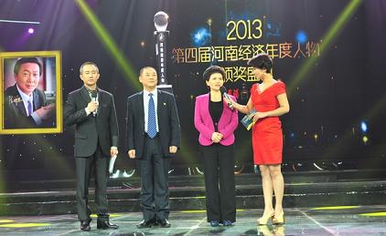 2014年1月7日19点30分,由河南卫视承办的2013第四届“河南经济年度人物”颁奖盛典在河南电视台演播大厅举行。博鳌亚洲论坛国际咨询委员会委员、原外贸部首席谈判代表、副部长龙永图先生,原国务院发展研究中心副主任侯云春先生,中国国际商会副会长成清涛先生担任嘉宾。全国政协科教文卫体委员会副主任王全书,河南省委常委、统战部部长史济春,河南省委常委、宣传部部长赵素萍,副省长张广智、张伟宁等领导出席颁奖盛典。
