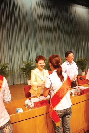 “多年前在老区考察时的情景,你难以想象老区孩子和老师的学习生活条件是多么恶劣。那一幕幕至今记忆犹新,时常刺痛心扉。”薛景霞真挚的语言朴实无华,她就是用这样的赤诚之心在奉献、在感动每一个人。大会上,薛景霞再一次通过基金,捐献出五万元,用于表彰上街区奋斗在教育第一线的骨干教师们。当她把奖金颁发给获奖的教师时,她对每一位道出了真诚的感谢:“谢谢你们为教育做的贡献,相比之下,你们才是伟大的。”教师们接过奖金,听到她温婉的声音,顿时热烈盈眶,感慨之情无以言表。