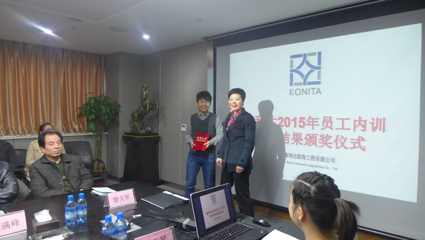 近日,康利达装饰节后【培训学习周】评选活动落下帷幕。本次评选采用全员参与实名制打分,受指定题目难易程度、临场发挥和听众评判、主流导向以及个人努力、平时积累和对待态度的影响;最终,市场营销中心王晨、市场管理中心朱晓娟、工程管理中心刘艳青脱颖而出,分别获得第一、二、三名。公司副总经理吕美芝为前三名发放证书、奖金。据悉,康利达装饰节后【培训学习周】已成功实施两年,学员高度评价,这个活动创造了浓厚的学习氛围,发展了内部人才,并且最大化的应用了内外部的培训资源,大家受益匪浅。