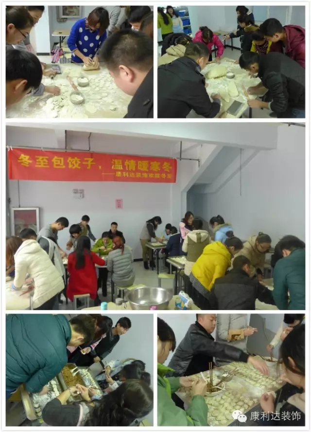 2015年12月22日,这一天是中国传统的一年一度的冬至日。俗话说“冬至大如年”,在这一天北方的人们有吃饺子的风俗。同时,饺子也象征着团聚、团结、团体、大家小家和聚一堂。康利达装饰的员工多为五湖四海的年轻人,没有时间回家与家人团圆吃饺子。为此,公司工会开展“冬至包饺子,温情暖寒冬”活动欢度冬至。