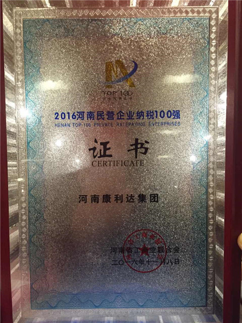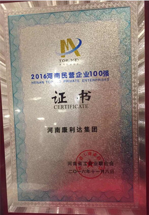 11月8日上午9时,由省工商联主办,省工信委、省工商局、河省金融办、省企业联合会/省企业家协会、河南日报报业集团支持的“2016河南省民营企业100强”发布会在河南商会大厦召开。会上,先后发布了2016河南省民营企业100强、河南民营企业制造业100强、河南民营企业纳税100强名单以及《2016河南民营企业100强调研分析报告》。康利达集团以11.58亿元营业收入第三次荣膺省民营企业100强,并以2.2亿元纳税额登榜省民营企业纳税100强第26位。