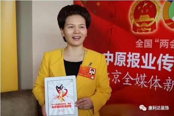 3月8日中午,利用会议的休息时间,全国人大代表、康利达集团董事长薛景霞应邀来到了驻京的中原报业传媒集团全媒体新闻中心两会会客厅,接受了中原网记者专访,并在访谈的背景板上写下:让我们共同努力,实现中国梦。