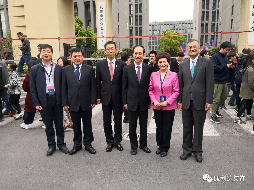 (图右至左依次为:西湖大学校董事会主席钱颖一、河南康利达集团董事长薛景霞、十二届全国政协副主席韩启德、西湖大学首任校长施一公、教育部关工委常务副主任姚喜双、河南康利达集团总裁訾建军)