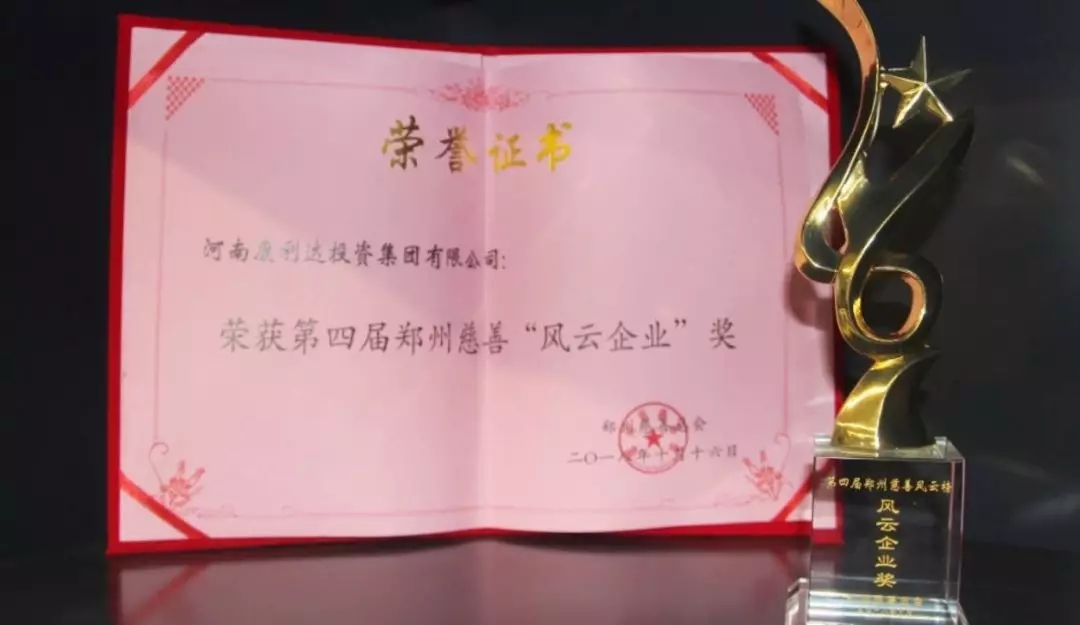 2018年10月16日下午,第十一个“郑州慈善日”活动在郑州市群众艺术宫举行,本次活动以“助力脱贫攻坚,创建慈善城市”为主题。活动现场共募集善款2.78亿元,再创郑州慈善日捐款新高。河南康利达投资集团有限公司荣获第四届郑州慈善“风云企业”奖。