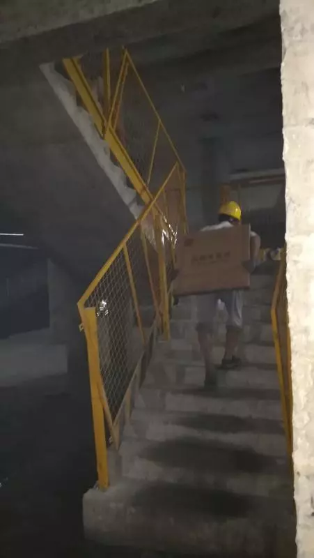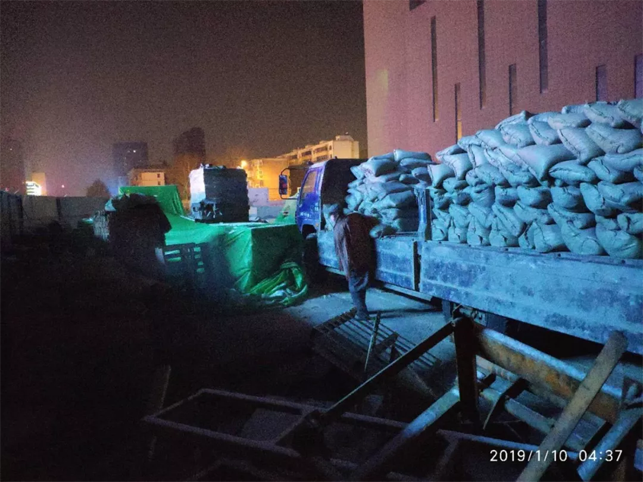“我下去站内的时候看到工人在往通道口背运水泥,满身灰土,因为在施工地面还有点不好走,确实背运很不方便。还有特殊的一点是到地铁的材料都是晚上来,晚上过来送材料,市区严查环保,材料都是晚上不定点的进,我听李建成说他们白天忙现场,晚上接材料,基本上每天都是这样。不管晚上几点来材料,他们都会提前过去接,第二天照常早早起来去上班,有的时候会多休息一会,我问小李时候忙的每天晚上接材料白天照常上班受的了么,他跟我说连着几天身体肯定受不了,有时候爬楼梯都没力气上,上几个要休息一会。”