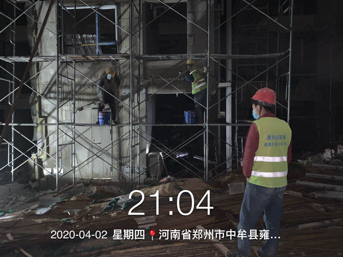 目前项目正处于紧张施工阶段,工人加班加点赶工是常事,就在4月2日,甲方邀请康利达装饰幕墙事业部领导进行走场时,工人也正在紧张而有序的施工之中,此时已经是夜里九点四十二分。