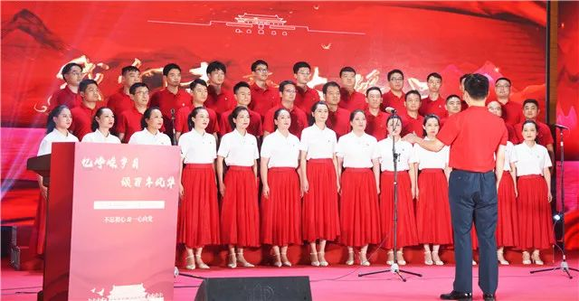 活动在庄严的国歌声中正式拉开帷幕。康利达装饰股份有限公司选送《跟你走》、《走在大路上》、《我的祖国》三首红歌曲目,嘹亮的红歌使在场所有人员真切感受到共产党一百年光辉灿烂的奋斗历程。大家用歌曲表达了对党100年的丰功伟绩以及改革开放40年以来的伟大成就的敬仰,表达了对党的热爱;唱出了新时代的心声,也展现了不忘初心、永远奋斗的热忱。