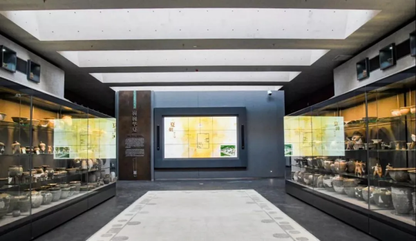 第一展厅(赫赫夏都·第一王朝),分为“茫茫禹迹九州攸同”“赐土命氏祚以天下”“夷夏东西夏道兴衰”3个单元,讲述了禹在数十年中,栉风沐雨,亲操耒耜,三过家门而不入,疏河浚川,平定水患,而后凝聚民心,使得一个广域王权国家开始形成。